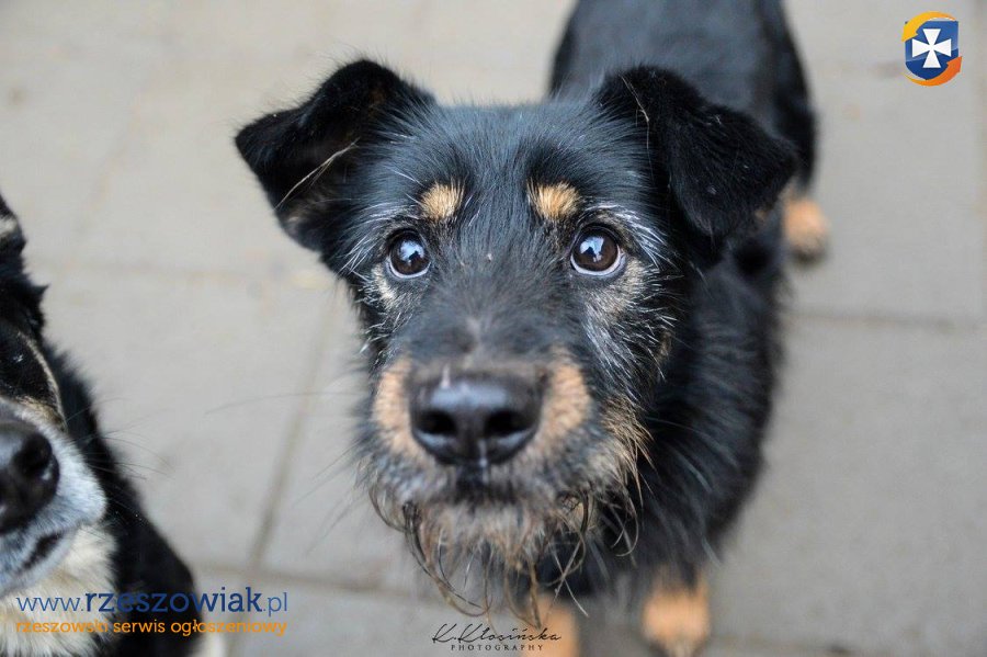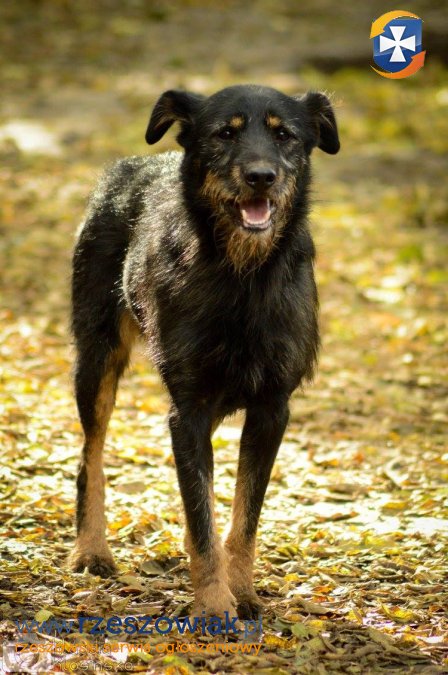 Zanim trafił do schroniska błąkał sie kilka tygodni po polach uprawnych, stroniąc od ludzi, czego skutkiem jest strach wobec nich.