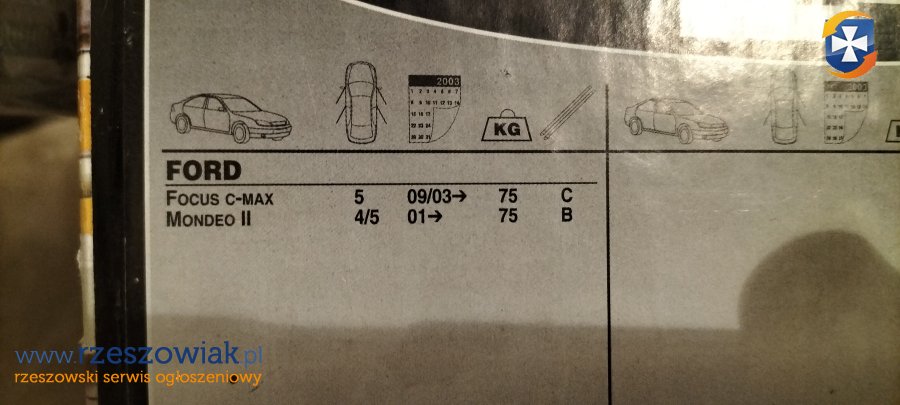 Do spprzedania uchwyty kompletne ( podkładki oraz maskownice z zamknieciem - cięzar do 75 kg )do bagaznika do Peugeot 307 HB oraz Forda Focus C-MAX 5 D od roku 09/2003- Mondeo II /4 5 D od 2001
