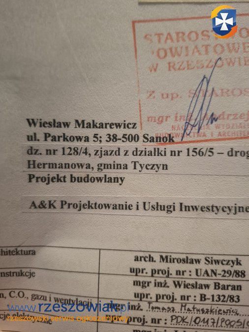 Do sprzedania 26 arowa działka w miejscowości Hermanowa gmina Tyczyn z rozpoczętą budową z indywidualnym projektem domu zrobionym przez Pana Mirosława Siwczyka wszystkie media prąd gaz woda kanalizacja na działce pozwolenia na budowę dojazd z głównej asfaltowej drogi
