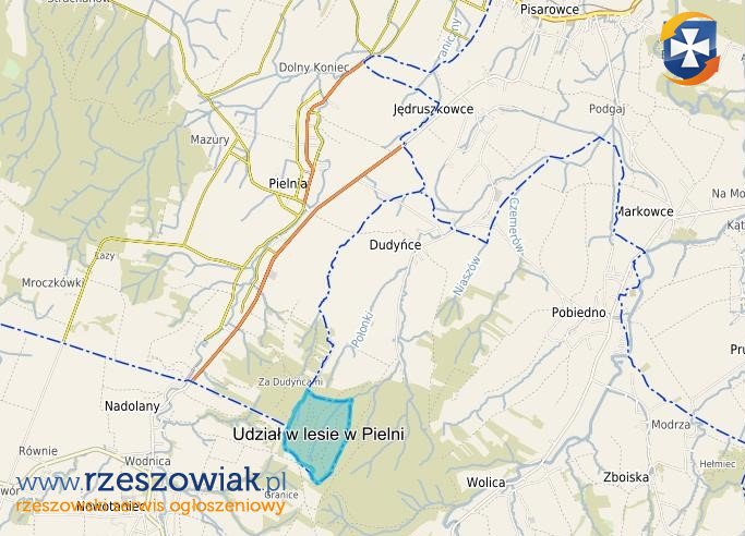 Do sprzedania 3,086% udział w lesie wynoszący 1,4634 ha, położony w Pielni, w gminie Zarszyn, w powiecie sanockim. Lokalizacja na skraju wsi Dudyńce. Udział w powierzchni lasu dotyczy działek w Pielni od numeru 521/11 do numeru 521/31, o łącznej powierzchni 47,42 ha.
