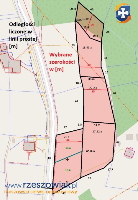- Dwie działki 13 ar, po 22 000 zł/ar