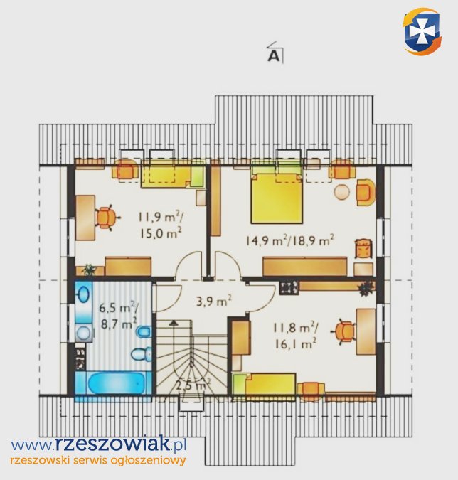 Pokój 1: 11,78 mkw./ 14,97 mkw.