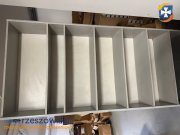 Do sprzedania dwa regały o wymiarze wysokość 2,2m szerokość ok 1m, kolor jasny szary z płyty laminowanej , używane po wystawie w sklepie