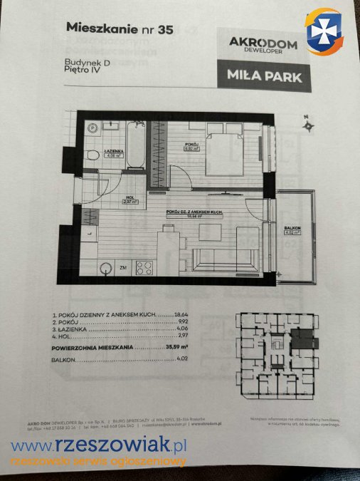 Do sprzedania funkcjonalne mieszkanie 2-pokojowe o powierzchni 35,59 m2 w nowym budownictwie na 4 piętrze, na osiedlu MIŁA PARK.