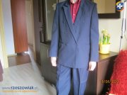 Do sprzedania granatowy garnitur ze spodniami uzyty tylko 3 razy.Dlugosc marynarki 77 cm,dlugosc rekawa po zewnetrznej stronie 62 cm,dlugosc rekawa od strony tulowia 44 cm,szerokosc klatki piersiowej 50 cm,dlugosc calkowita spodni 103 cm,szerokosc w pasie 37 cm (obwod pasa okolo 74 cm).Cena kompletu 120 zl.