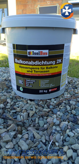 Do sprzedania hydroizolacja Balkonabdichtung 2K firmy IsolBau, wiaderko 20kg zawiera składniki A i B. Zaprawa nowa, zostało mi 8 wiaderek (za dużo zamówiłem, zużyłem 14) do sprzedania. Podana cena jest za jedno wiaderko. Preferowany odbiór osobisty (możliwość zobaczenia jak wygląda) ale również z możliwością wysyłki. Wysokiej jakości zaprawa polecam.