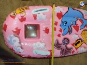 2 materacyki nadmuchiwane z uchwytami i "okienkiem" przez które można oglądać podwodny świat,