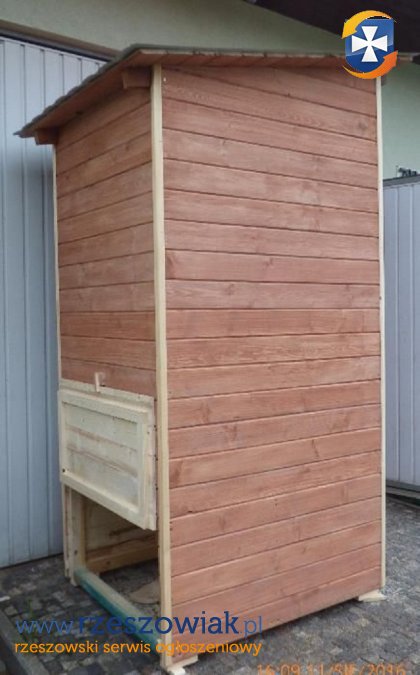 Do sprzedania nowy wc drewniany na budowę, działkę itp. Wymiary 90 cm szerokość, 100 cm głębokość 220 cm wysokość. Dach pokryty blachą. Możliwość transportu w pobliżu Rzeszowa.