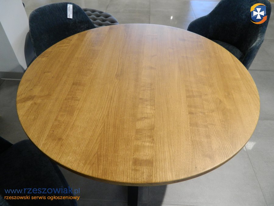 Do sprzedania piękny, okrągły stół z litego Dębu - nie fornir, lakier Adler półmat, nogi stal lakier czarny mat, drobna struktura, stół z ekspozycji z salonu wystawowego, nie uszkodzony, cena katalogowa 4,500zł, wyprzedaż ekspozycji, OKAZJA. Wymiary; wysokość - 74cm, średnica 110cm, grubość blatu 4cm. Możliwy transport. tel 600 381129