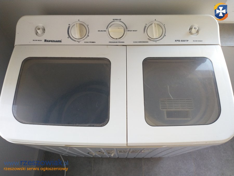 Do sprzedania pralko-wirówka Ravanson XPB-680TP, używana. Jest to pozostałość po lokatorach, którzy używali jej w wynajmowanym mieszkaniu. Jeśli chodzi o stan techniczny to działa i pierze pralka, natomiast nie działa wirówka. Nie wiem co jest tego przyczyną, może ktoś potrafi ją usprawnić. Czas pracy ustalany zegarem: dla pralki do max. 15 minut i dla wirówki do max. 5 minut. Oba zegary działają prawidłowo. Pobór mocy pralki 400W. Max. wsad to 6,8 kG. Pralka jest lekka, waży tylko 16 kG bo obudowa jest plastikowa, więc może ją przenieść 1 osoba. Cena niska z uwagi na opisaną usterkę. Do obejrzenia w okolicach Al. Niepodległości w Rzeszowie, w domu jednorodzinnym. Proszę dzwonić tylko w godz. 12-22.