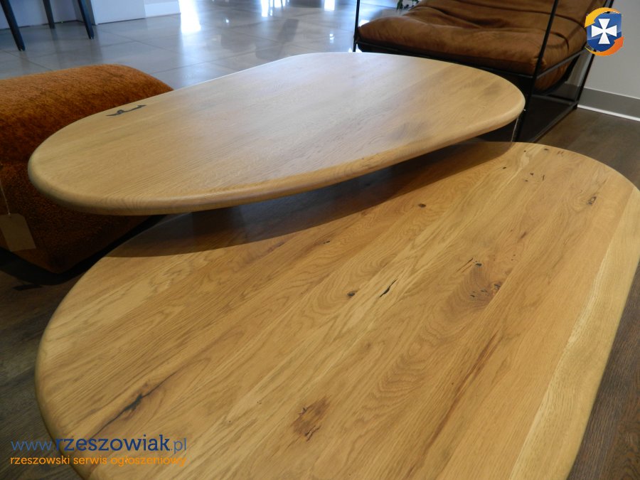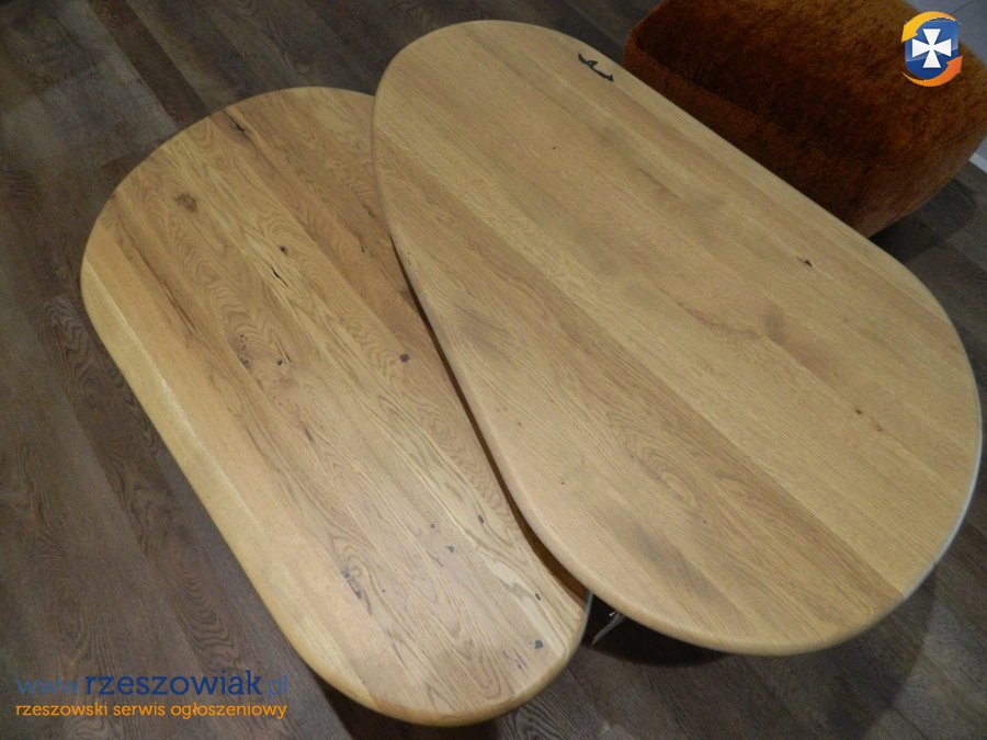 Do sprzedania stoliki kawowe 2 sztuki kpl. lity dąb rustykalny - nie fornir, lakier bezbarwny Adler , owalne niższy - wyższy kpl, Podana cena za sztukę. Stoliki nowe z ekspozycji z salonu, wyprzedaż ekspozycji, OKAZJA, cena katalogowa 1,800zł/sztuka, wymiary; wysokość wyższy -45cm, niższy - 37cm, zasuwane pod siebie - co daje efekt, blaty takie same, grubość 2,5cm, długość 100cm, szerokość w miejscu najszerszym 60cm. Możliwy transport, tel 600 381129