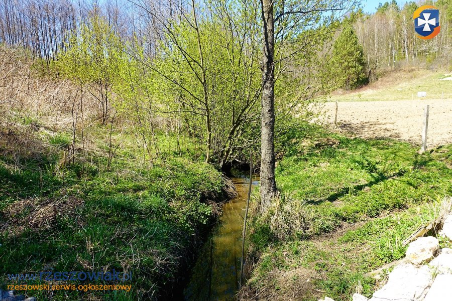 Wzdłuż granicy działki przebiega strumyk.