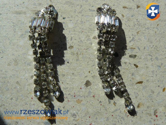 Do sprzedania uzywane klipsy do uszu,calkowita dlugosc 7,5 cm,z duza iloscia drobnych "krysztalkow",ktore odbijaja padajace swiatlo,dajac ciekawy efekt.