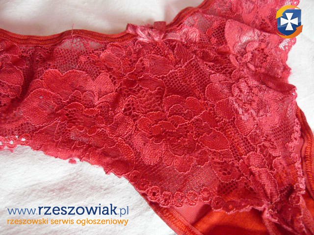 Do sprzedania uzywane stringi czerwone,koronkowe.Szerokosc 29 cm,wysokosc 21-23 cm.