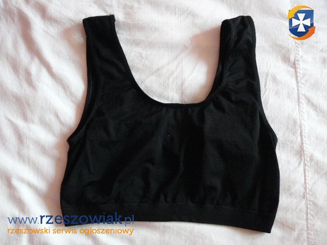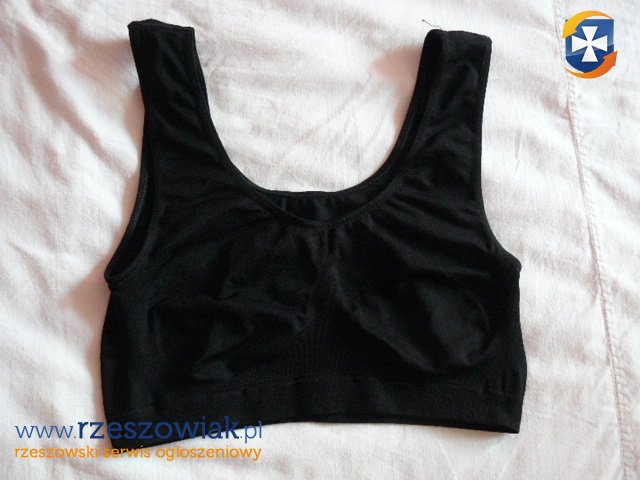 Do sprzedania uzywany czarny biustonosz sportowy,dopasowujacy sie do ksztaltu piersi,75B.Szerokosc 31 cm,wysokosc 32 cm.