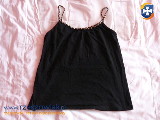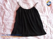 Do sprzedania uzywany,czarny top na ramiaczkach,rozmiar XS.Szerokosc pod pachami 35 cm,szerokosc na dole 46 cm,dlugosc calkowita 51 cm.