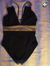Do sprzedania uzywany kostium kapielowy Decathlon,jednoczesciowy,czarny z bezowa wstawka,zapinany na zamek z przodu,na wzrost 160-166 cm (S/M).