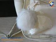 Do sprzedania uzywany maly plecaczek z pomponem,kolor bialy.
