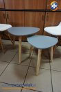 Do wyboru w 2 kolorach: bialy i szary, blat w kształcie trójkata z zaokraglonymi rogami, noga wykonana z drzewa bukowego-surowa. Można kupić każdy stolik osobno (duży-70zl, mały-50zl). Dostępna duża ilość. Wymiary stolików: