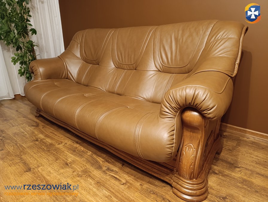 Kanapa trzyosobowa w stylu mebli holenderskich. Jest mało używana, skóra naturalna w kolorze brązu. Całość w idealnym stanie, bez plam i nieczyszczona. Posiada funkcję spania. Cena 1500 zł.