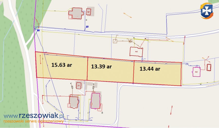 Do sprzedaży 3 działki o łącznej powierzchni 42.46 ar, obecnie podzielone na następujące powierzchnie: 15.63ar, 13.39ar, 13.44ar.