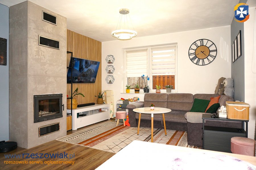 - W salonie kominek dający ciepło na otwartą część parteru