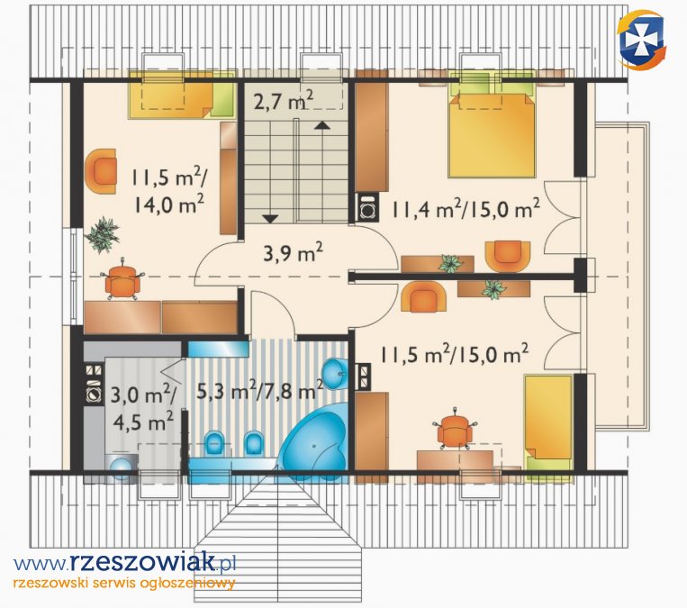 - Nad piętrem strych z wykonanym stropodachem
