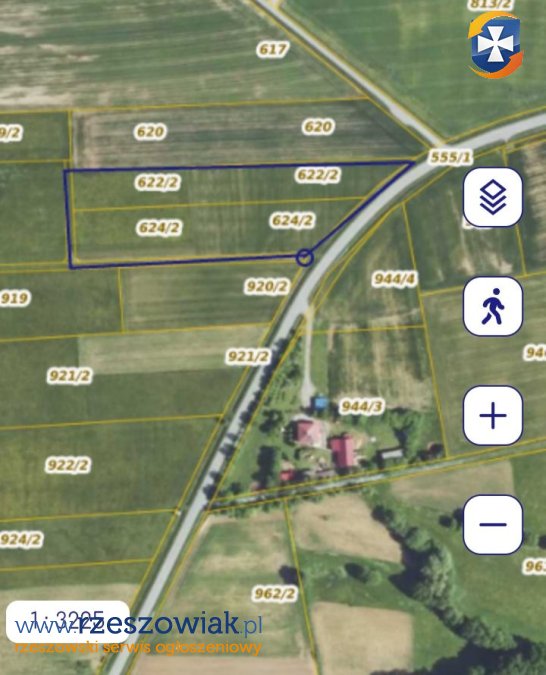 Nieruchomość składa się z dwóch działek 622/2 i 624/2 o powierzchni 93 ary i ma kształt trapezu.