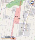Działka najszersza ściśle pod budowę posiada powierzchnię 42ar, do niej dochodzą dwa cieńsze paski - jeden to droga dojazdowa oraz druga działka na końcu.