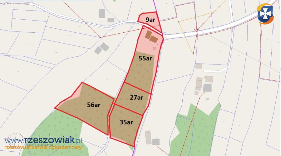 Do sprzedaży w pakiecie działki o powierzchniach: 56ar, 55ar, 35ar, 27ar, 9ar znajdujące się w podrzeszowskiej miejscowości Borek Stary.