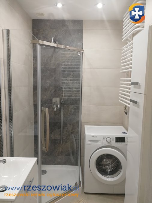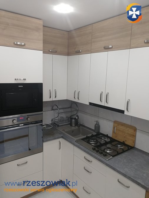 Mieszkanie składa się z trzech umeblowanych pokoi, kuchni wyposażonej w system zabudowy mebli i sprzętu AGD ( zmywarka, lodówka, mikrofalówka), łazienki z prysznicem, pralką oraz WC , przestronnego przedpokoju wyposażonego w system szaf wnękowych. Przy osiedlu basen, wiele sklepów (np. Biedronka), galeria handlowa "Nowy Świat", poczta, apteka, przychodnia lekarska, kościół, żłobek, przedszkola, szkoła, WSIZ. Znakomita komunikacja do centrum. Opłaty: czynsz, energia, woda, gaz.