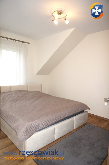 - Sypialnia małżeńska: duże 2 osobowe łóżko (pozostanie rama łózka, materac we własnym zakresie najemcy), szafka RTV