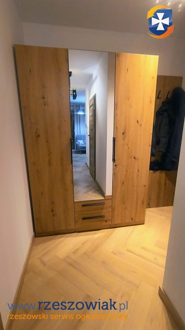 W skład mieszkania wchodzi salon z aneksem kuchennym, sypialnia, łazienka oraz duży przedpokój. Lokal jest w pełni wyposażony â duże szafy, łóżko z materacem, zabudowa kuchenna oraz wszystkie niezbędne sprzęty AGD.