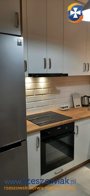 W kuchni znajdują się meble w zabudowie z nowym AGD tj. kuchenką indukcyjną, piekarnikiem, zmywarką, kuchenką mikrofalową, okapem i dużą lodówko-zamrażarką z 3 szufladami i ogrzewaniem podłogowym. Urządzono tam również małą jadalnię. W korytarzu zamontowano dwie pojemne szafy.