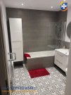 -duża łazienka z wanną i szybą prysznicową