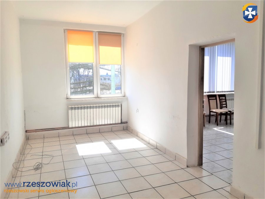 Lokal składa się z trzech dobrze doświetlonych pomieszczeń, kuchni z jadalnią, oddzielnego WC oraz dodatkowej toalety z prysznicem. Obiekt wykończony w średnim standardzie, z możliwością adaptacji do własnych potrzeb. Wejście na piętro przez klatkę schodową od strony ulicy. Przynależny parking z kilkoma miejscami postojowymi. Dodatkowo możliwość wynajęcia utwardzonego placu o pow. ok. 1300 mkw.