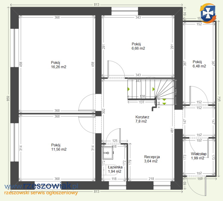 - pomieszczenia: 4 pokoje + łazienka + recepcja