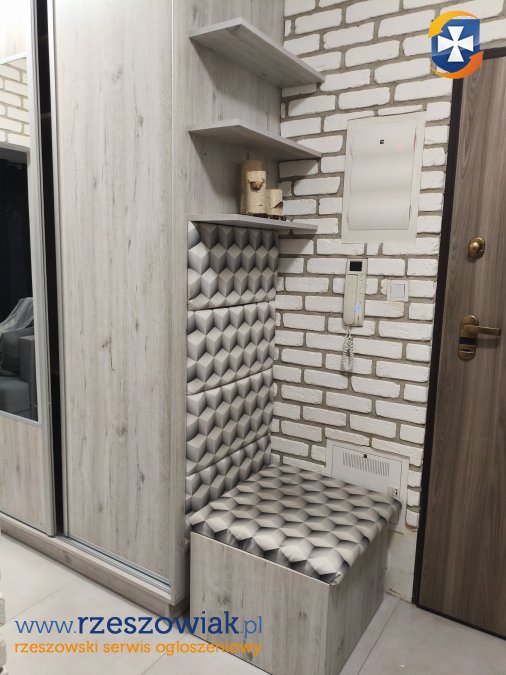 Mieszkanie w pełni wyposażone: płyta indukcyjna, zmywarka, czajnik, kuchenka, garki, sztuce, talerze, szkoło, filiżanki, itp narożnik, stół z 6 krzesłami, biurko, meble, duża szafa w zabudowie w przedpokoju z siedliskiem,szafa w zaBudowie w sypialni i salonie, szafka na buty.