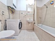 pralkę i lodówkę. Łazienka w płytkach podłogowych i ściennych z wanną.