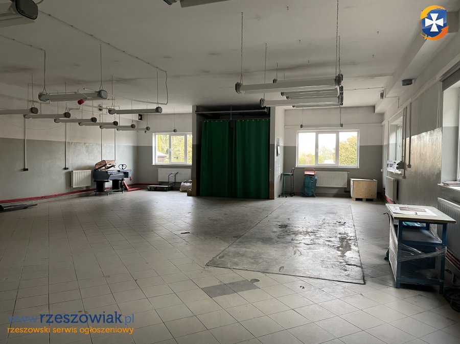350m2 jest na parterze, standard przemysłowy, ok. 220m2 na piętrze biura, ok. 60 m2 jest na poddaszu, są to pomieszczenia socjalne (szatnie). Przed budynkiem parking na 8 samochodów. Ogrzewanie własne (kocioł gazowy), siła do 100kW. Można wynająć poszczególne kondygnacje.