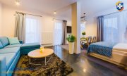 - przestronnej, otwartej przestrzeni dziennej łączącej część wypoczynkową, sypialnianą oraz aneks kuchenny,