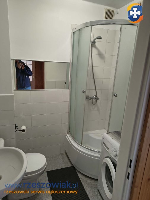 âŁazienka: Z kabiną prysznicową, toaletą oraz pralką.