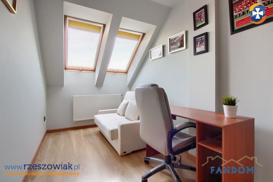 Na piętrze mieszkania znajdują się dwa pokoje (jeden przejściowy) oraz łazienka.