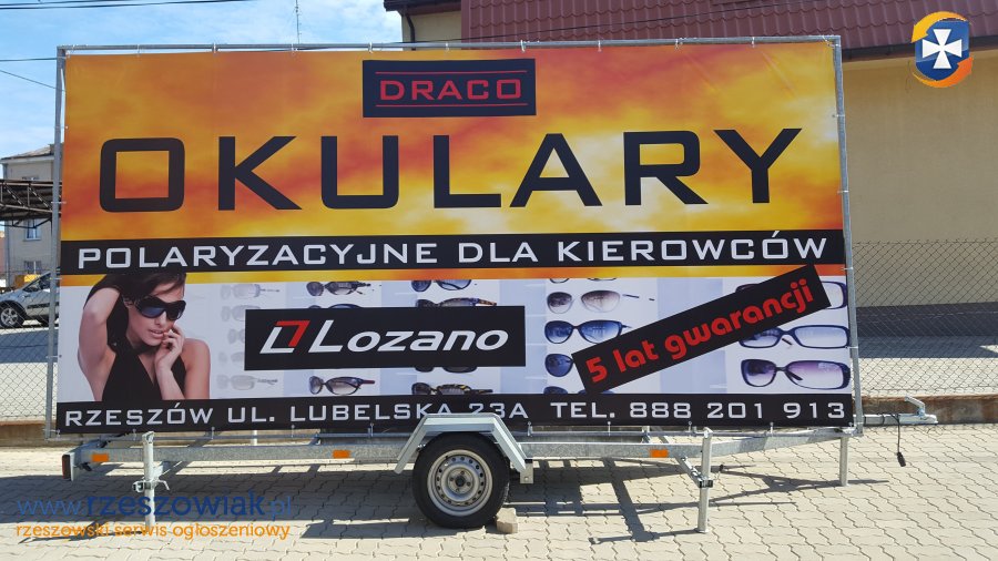 Wynajem przyczepy jako reklamy mobilnej (samochód + przyczepa + kierowca) - idealna do reklamy objazdowej, pozwala dotrzeć do dużej liczby odbiorców.