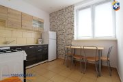Kuchnia w zabudowie, pokryta płytkami podłogowymi oraz ściennymi. Łazienka posiada wannę oraz pralkę, WC jest osobno całość pokryta płytkami ściennymi oraz podłogowymi.