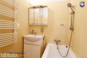 Kuchnia w zabudowie, pokryta płytkami podłogowymi oraz ściennymi. Łazienka posiada wannę oraz pralkę, WC jest osobno całość pokryta płytkami ściennymi oraz podłogowymi.