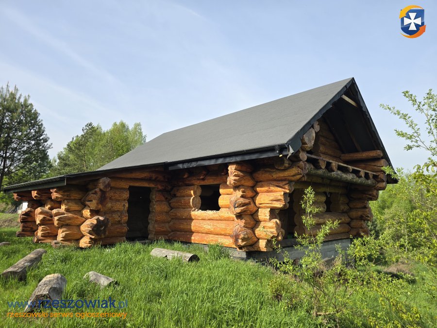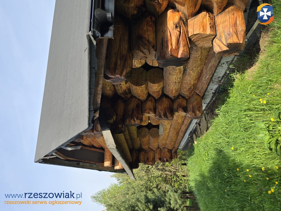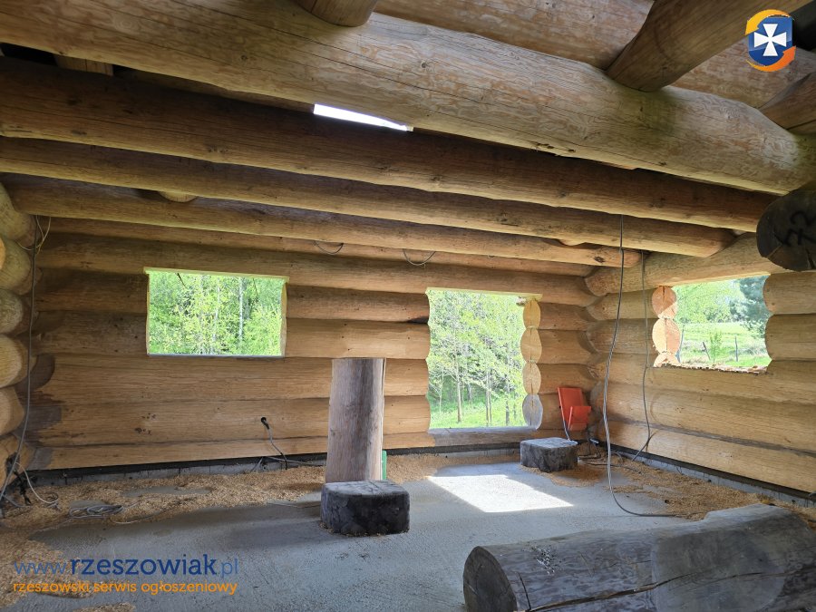Dom z bala świerkowego o przekroju 0.5m o łącznej powierzchni ok 200 m w stanie surowym otwartym z rozprowadzoną instalacją elektryczną.