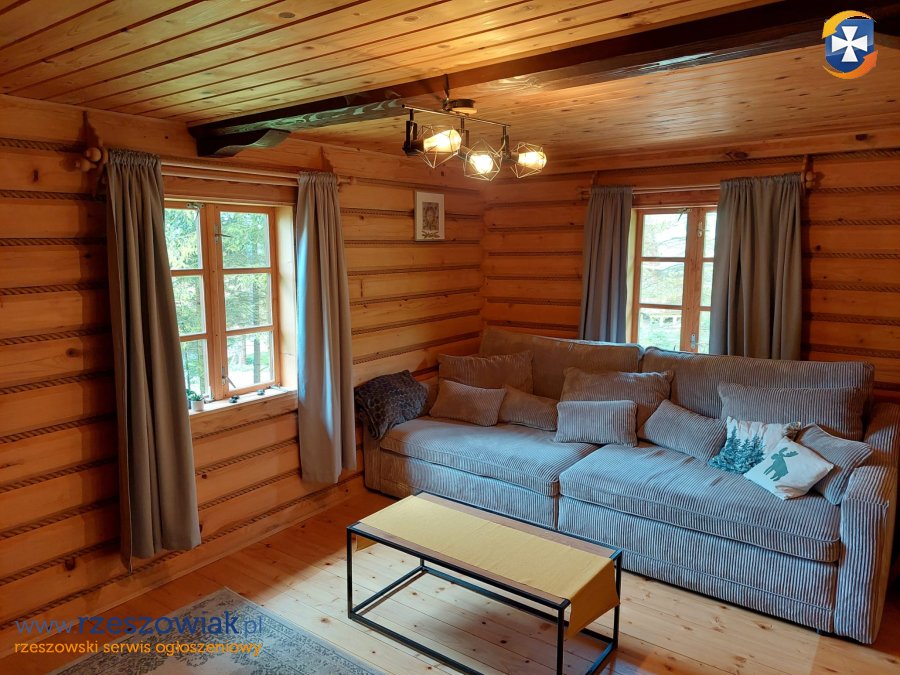 Dom zbudowany w 2000 roku z bala, na podmurówce, o powierzchni ok. 78m2, dach pokryty blachodachówką, okna drewniane, w salonie piękny kominek z kamienia, w kuchni duża kuchnia kaflowa, schody drewniane, wnętrze domu wykończone w drewnie.