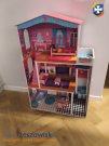 Domek dla Lalek Barbie Parter, pierwsze, drugie piętro, schody, winda. Stolik 2 krzesła, wanna, toaleta, sofa łóżko, ława. Używany. Stan bardzo dobry. Wysokość 116 cm szerokość 75 cm. Odbiór osobisty.