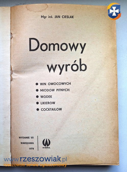 Domowy wyrób win. Książka zawiera wiele przepisów na wina owocowe, nalewki, wódki, miody pitne, likiery i cocktaile. Książka w dobrym stanie z niewielkimi śladami użytkowania. Stan widoczny na zdjęciach. Możliwa wysyłka InPost 17 zł.